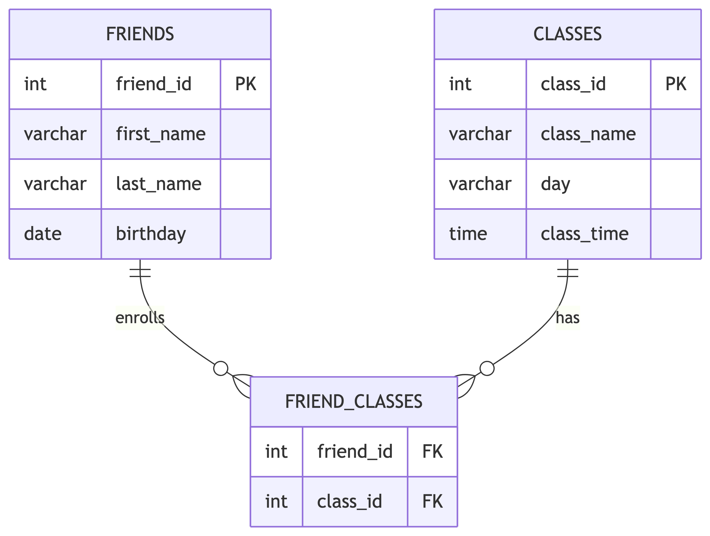 Example: Creating a Friends Table