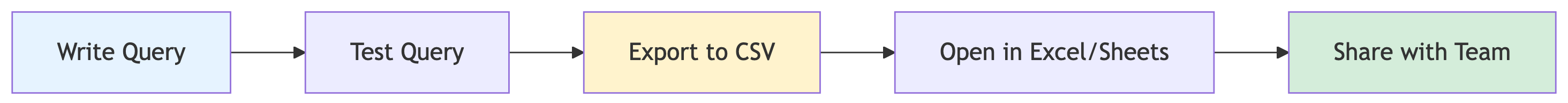 | Export query result | \COPY (SELECT ...) TO 'file.csv' WITH (FORMAT csv, HEADER true) |