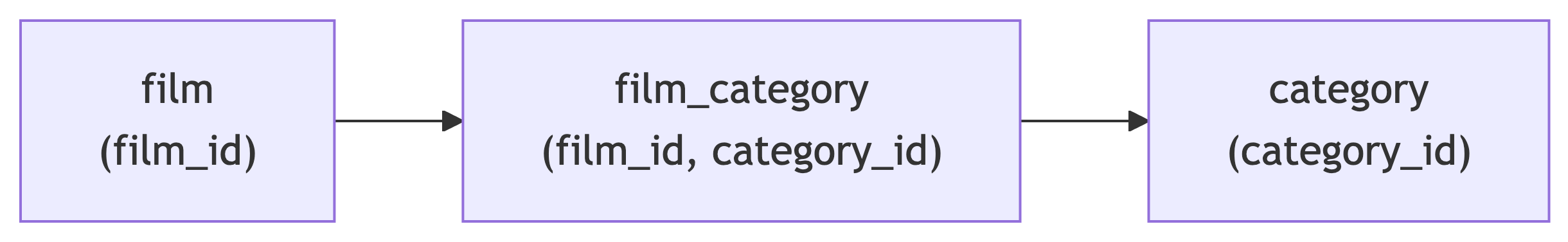 film to film_categoryfilm_category to categoryThe film_actor bridge table connects films and actors: