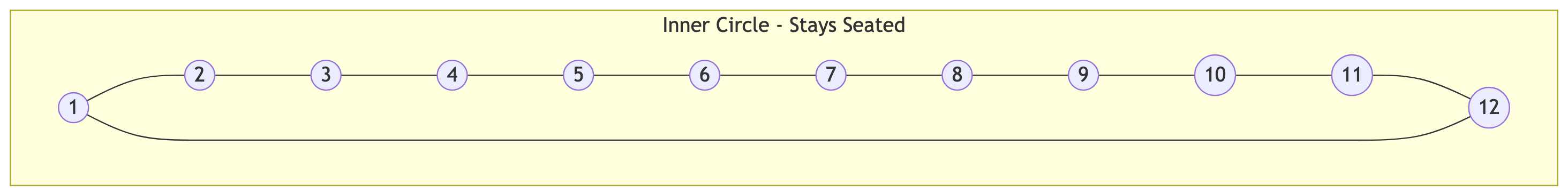 | 5:00-6:00 | Both score and take notes, outer rotates |
