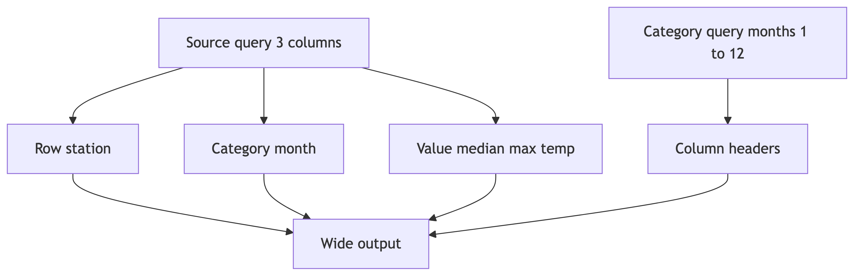 crosstabquery from Part 5 (ice cream example). - Run query. Confirm columns are office plus flavor counts.