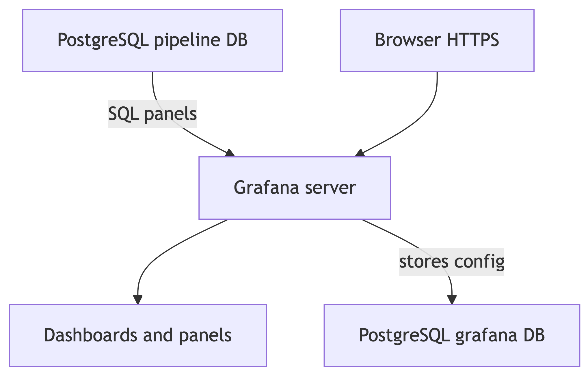 Grafana does not replace your ETL jobs. It reads from PostgreSQL (ideally through views and restricted users) and renders results on a schedule or on demand.
