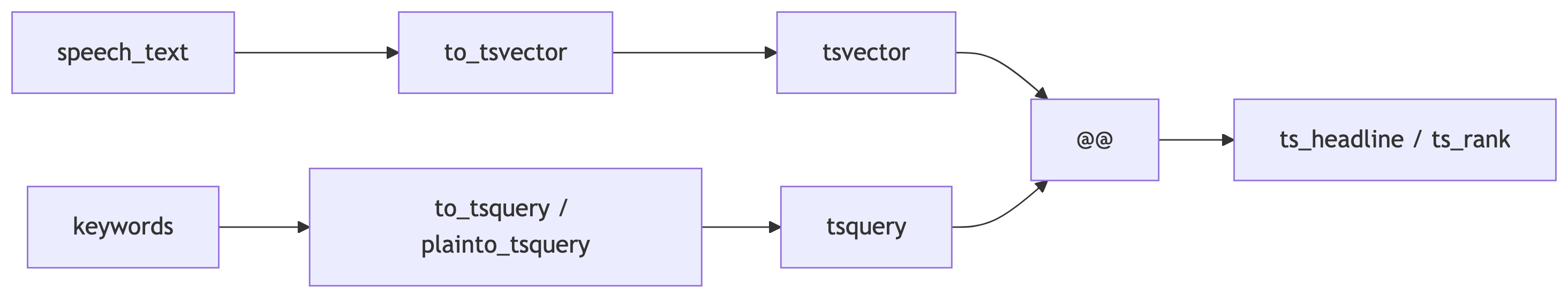 WHERE search_speech_text @@ to_tsquery('english', 'economy & jobs')